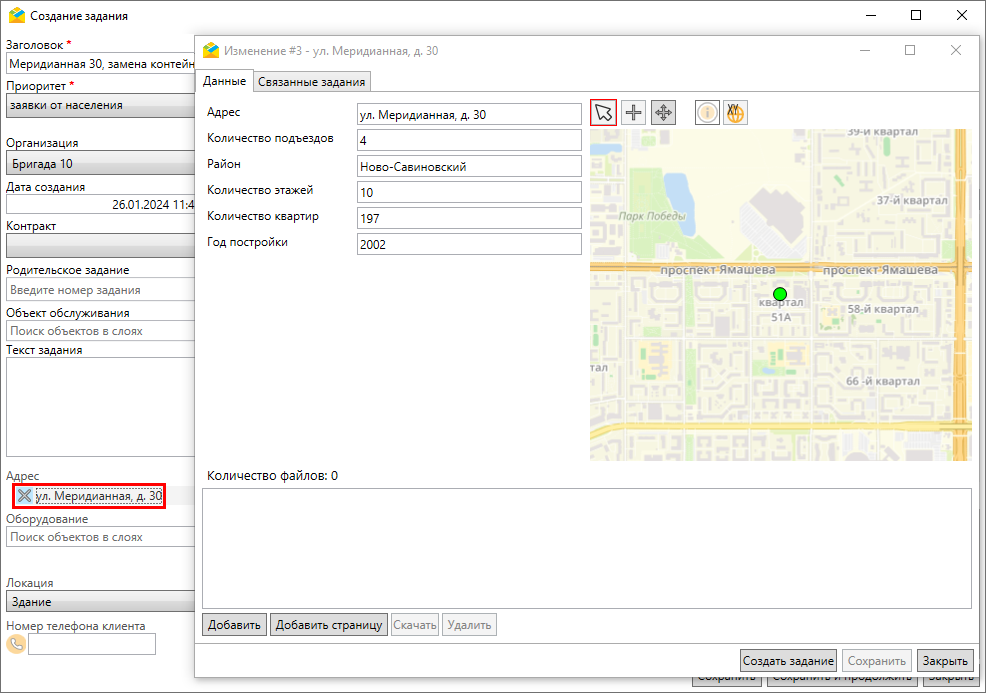 Рис. 2.193 Окно создания задания с привязкой к сервисному объекту