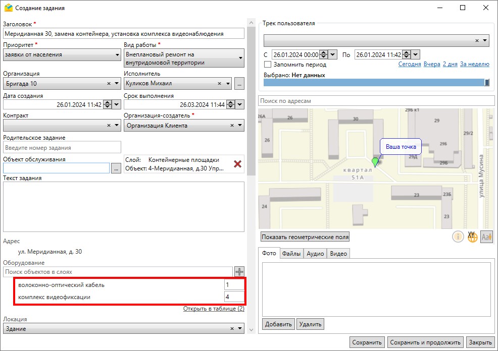 заголовке задания (в поле прописано название объекта обслуживания, его можно отредактировать);