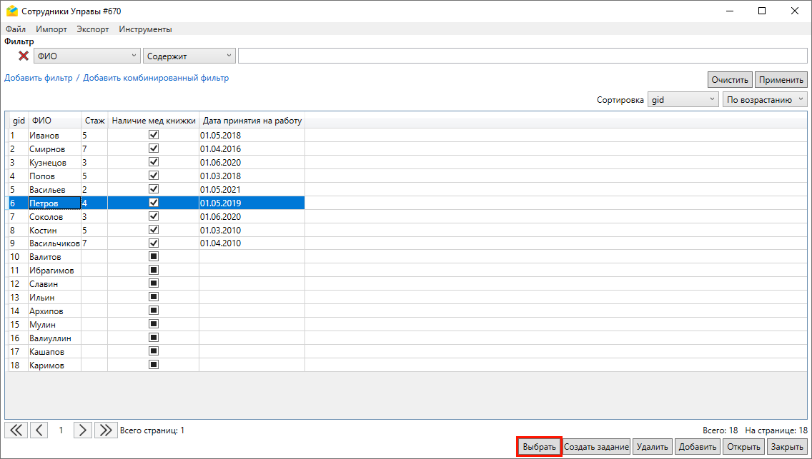 Откроется окно (Рис. 2.131), поддерживающее единичное создание и редактирование записи, импорт, экспорт, редактирование и удаление данных. В окне таблицы с данными можно также создавать задания с привязкой к объектам таблицы. В окне справочника такая возможность отсутствует.