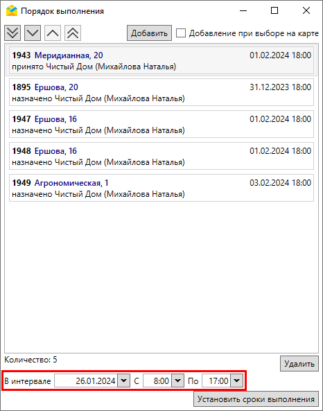 В результате срок выполнения заданий равномерно распределяется по выбранным заданиям в рамках установленного временного интервала.