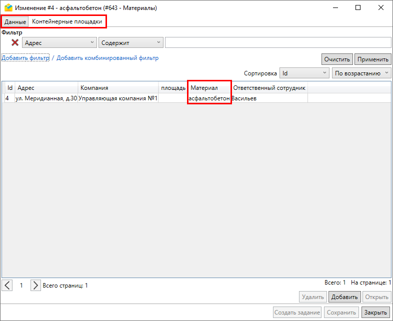 Окно «Изменение» содержит вкладки «Данные» и «Связанные задания». Кроме них могут быть дополнительные вкладки с названием связанных слоев.