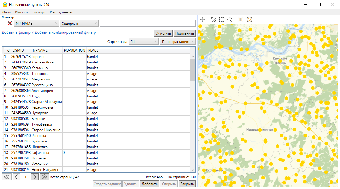 Рис. 2.102 Окно слоя «Населенные пункты»