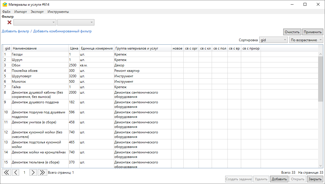 Откроется окно (Рис. 2.133), поддерживающее единичное создание и редактирование записи, импорт, экспорт, редактирование и удаление данных. В окне таблицы с данными можно также создавать задания с привязкой к объектам таблицы. В окне справочника такая возможность отсутствует.