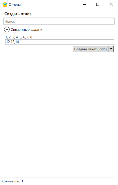 Рис. 2.112 Окно отчетов, поле ввода идентификаторов объектов