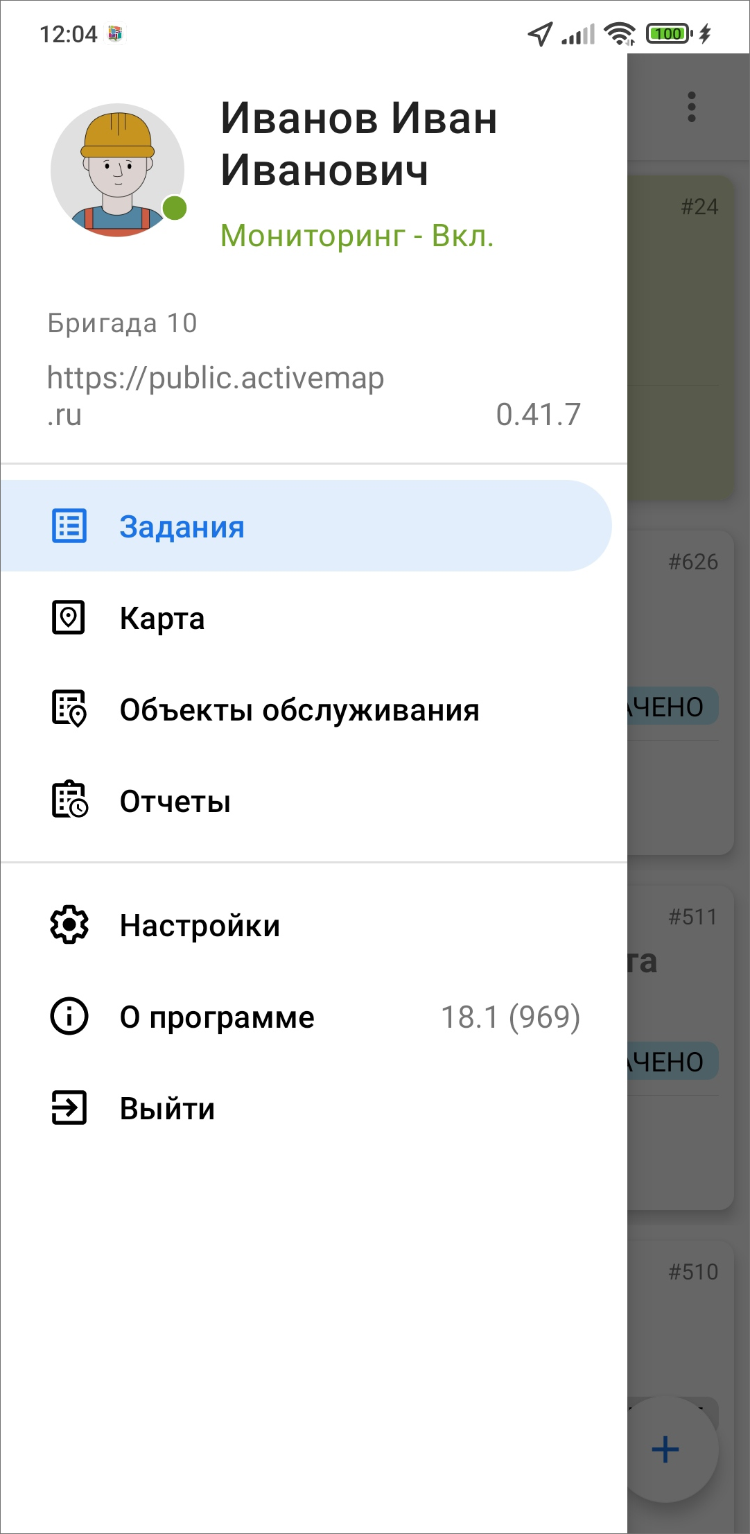 Для завершения настройки системы нужно нажать «Готово». Откроется приложение «ActiveMap Mobile» с готовыми заданиями для всех созданных пользователей (Рис. 2.10).