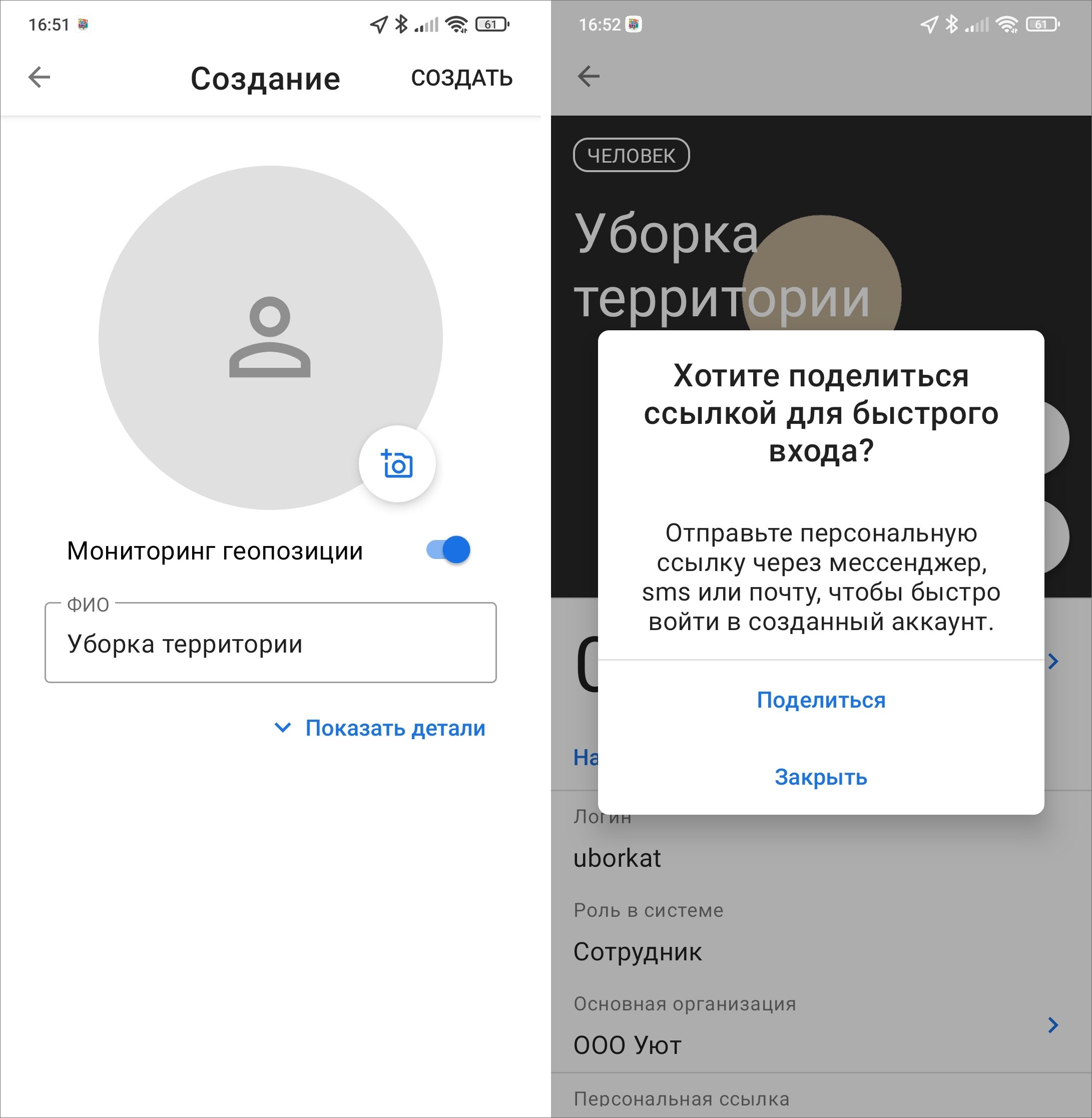 Рис. 2.6 Создание аккаунта сотрудника