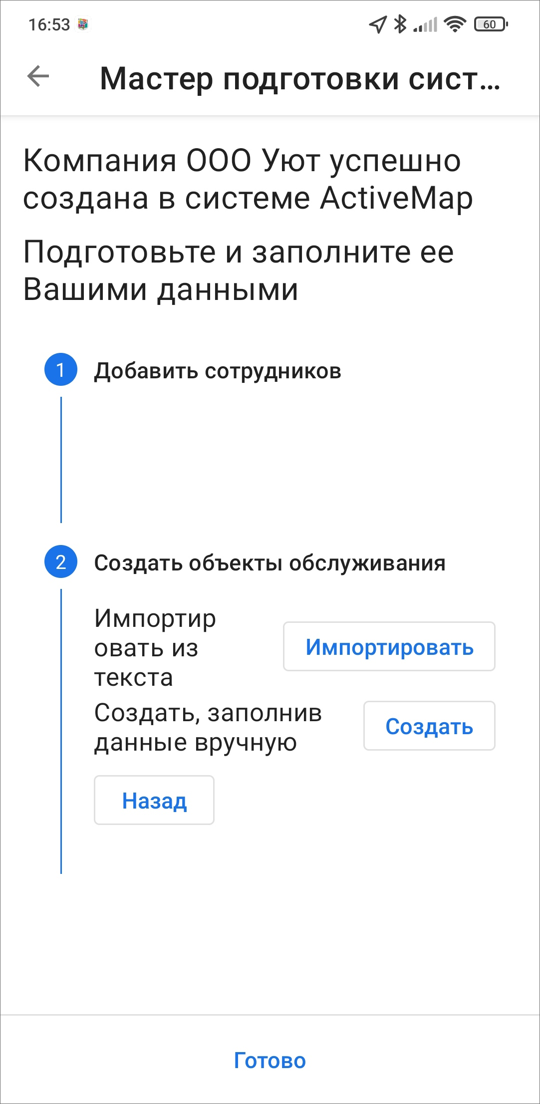 2.1.2. Регистрация компании и сотрудников в приложении