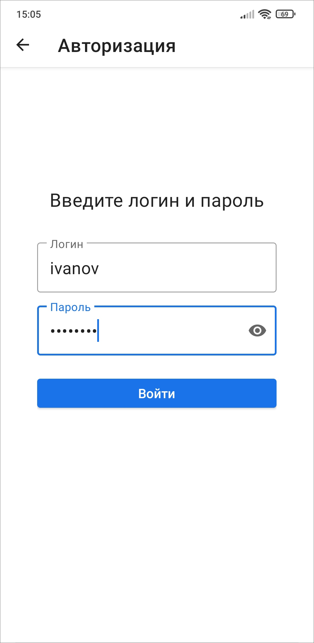 В следующем окне необходимо ввести регистрационные данные пользователя (логин и пароль) и нажать «Войти» в нижней части регистрационной формы (Рис. 2.13).