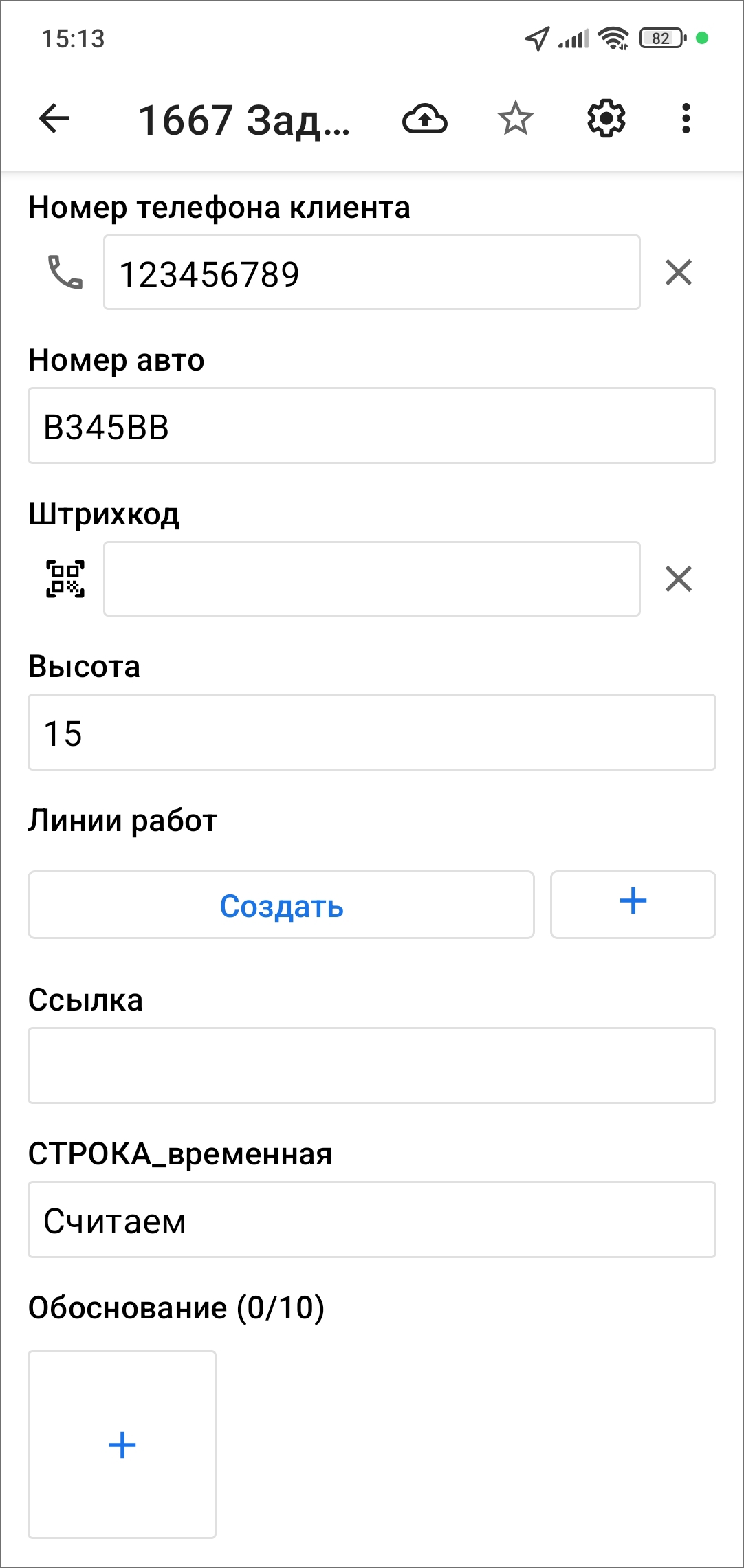 настраиваемые поля, доступные для работ выбранного вида (подробнее про работу с настраиваемыми полями: Работа с настраиваемыми полями);