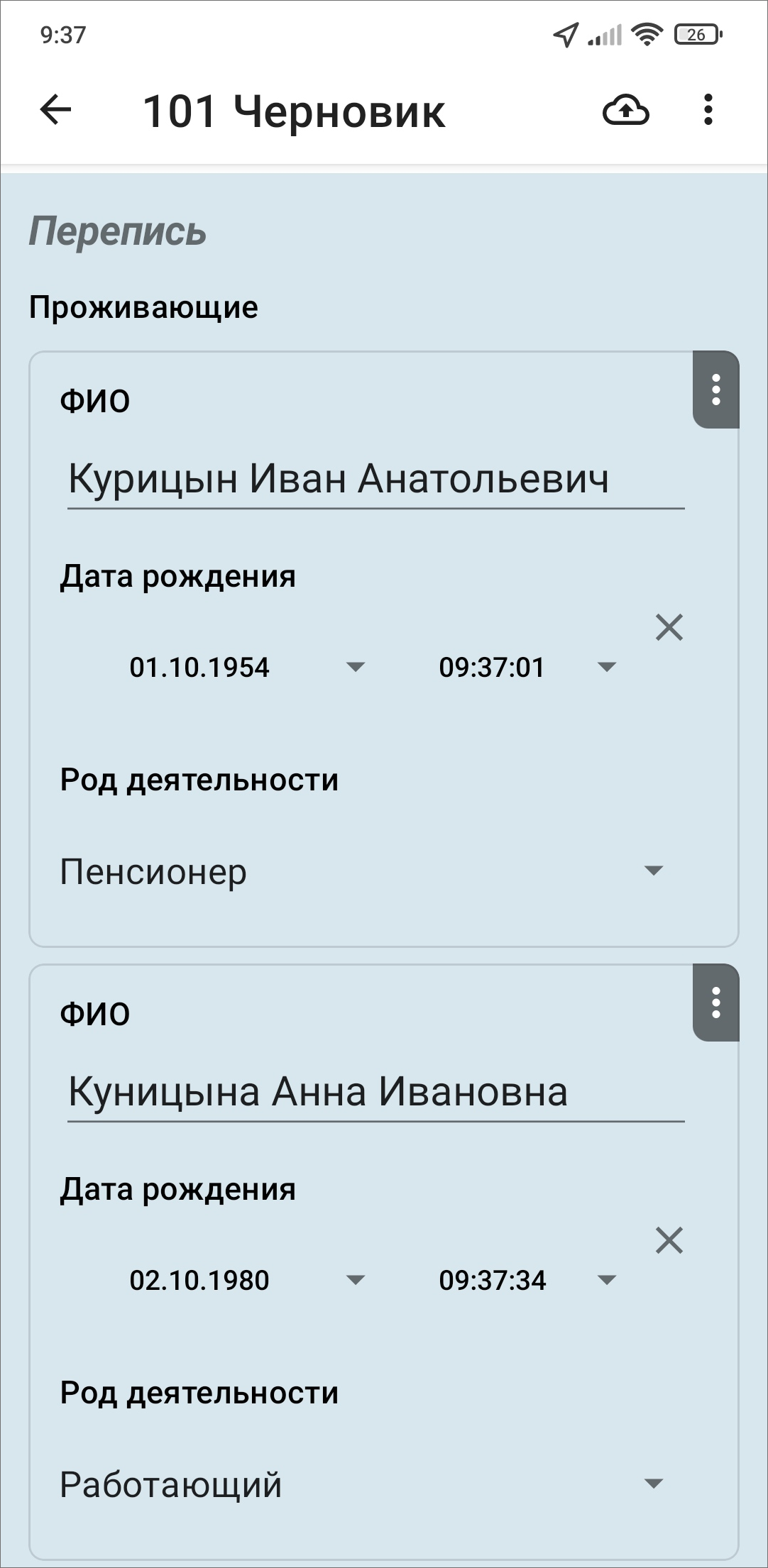 . Сохраненные, но не отправленные на сервер задания, будут отмечены надписью «Черновик» и выделены зеленым цветом в списке заданий «Мои задания» (Рис. 2.29, подробнее о настройке списков: Быстрые фильтры заданий). В приложении реализована фоновая отправка новых и измененных заданий на сервер. Это означает, что если запустить групповую отправку заданий или изменений, то приложение будет доступно для работы, и не нужно будет ждать окончания загрузки на сервер.