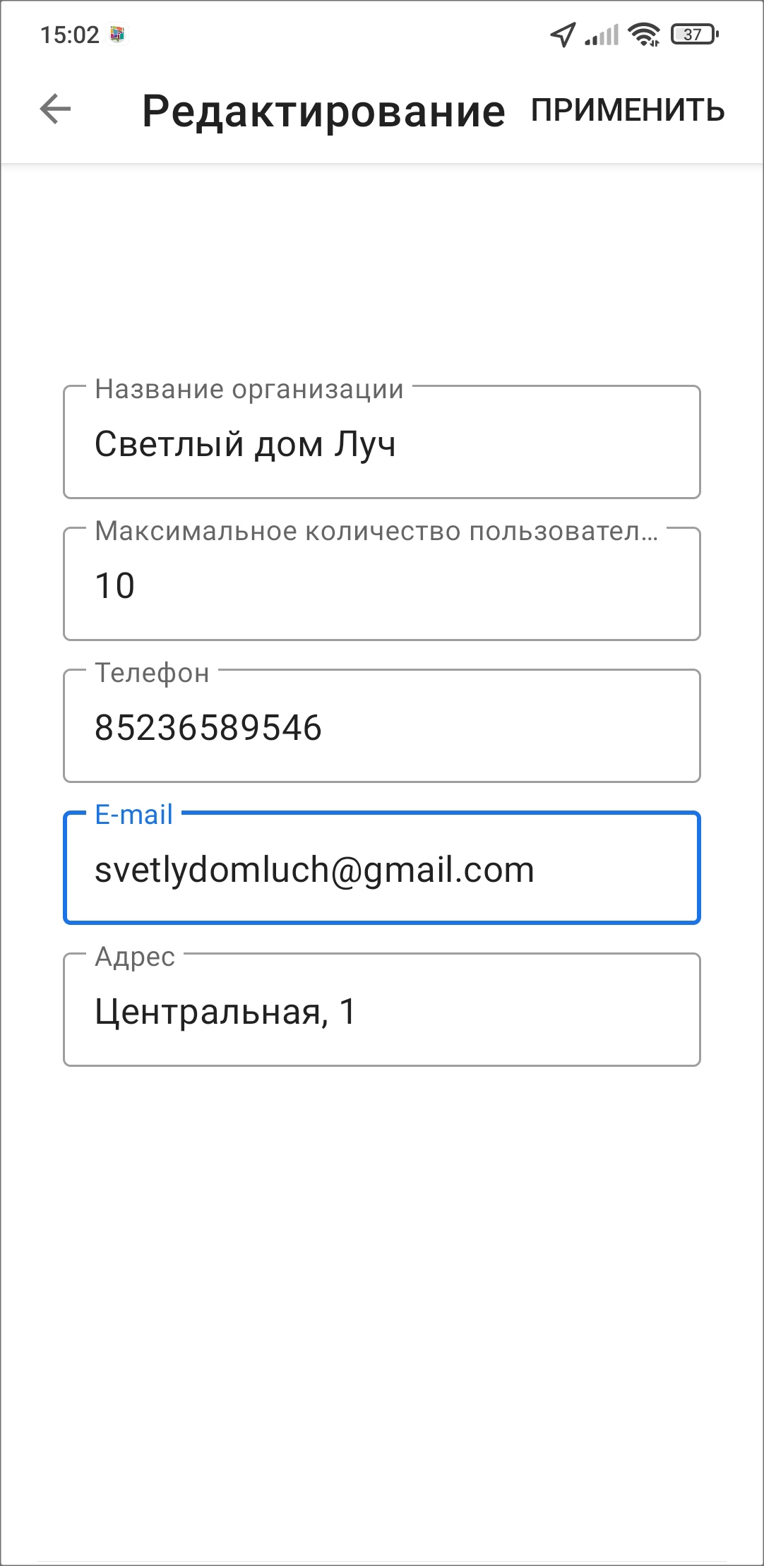 Далее нужно выбрать организацию, внести изменения в открывшемся окне редактирования и нажать «Применить» (Рис. 2.72).