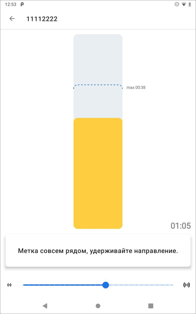 Желтый — метка совсем рядом, удерживайте направление;