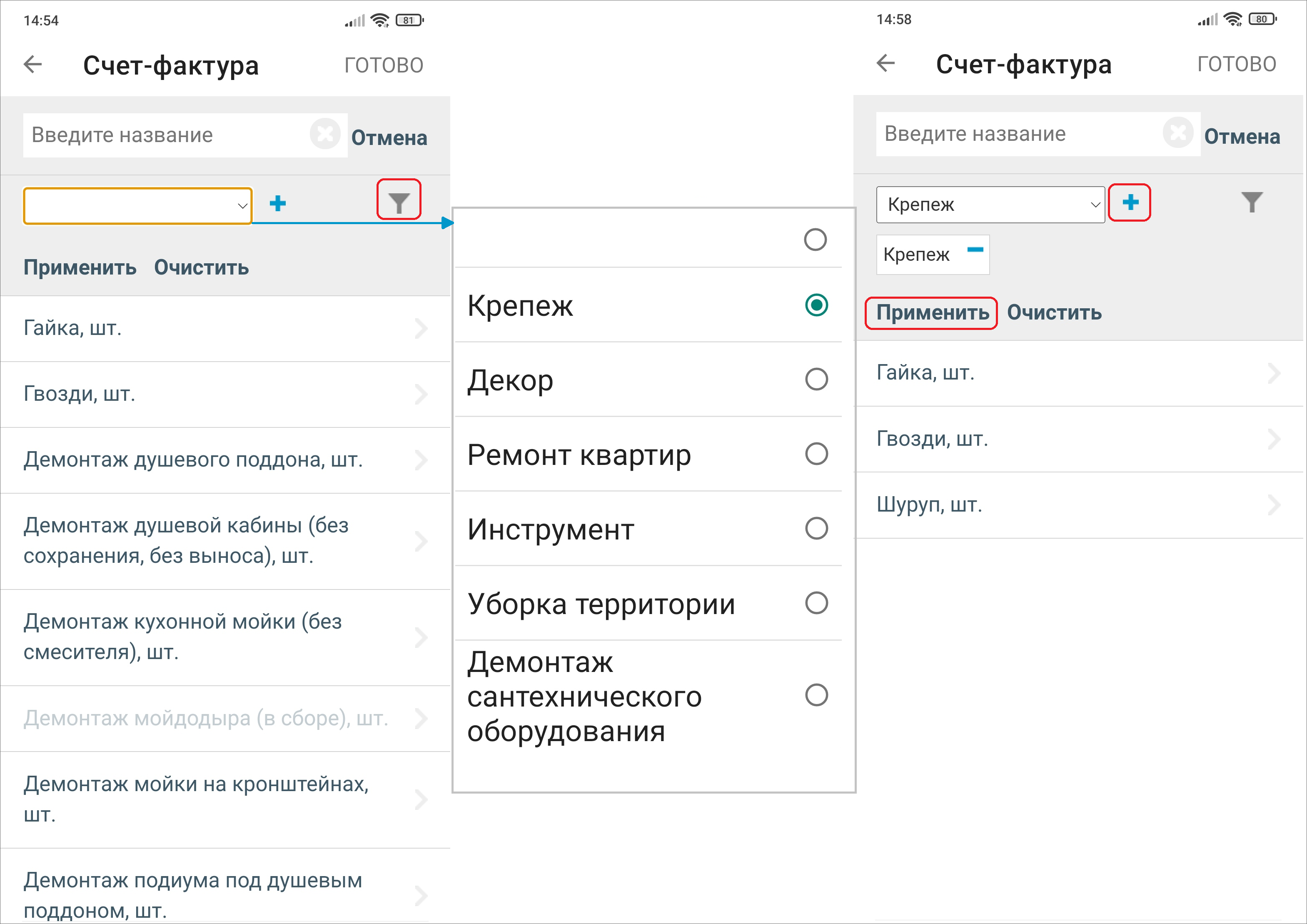 Рис. 2.129 Фильтр по группам материалов и услуг