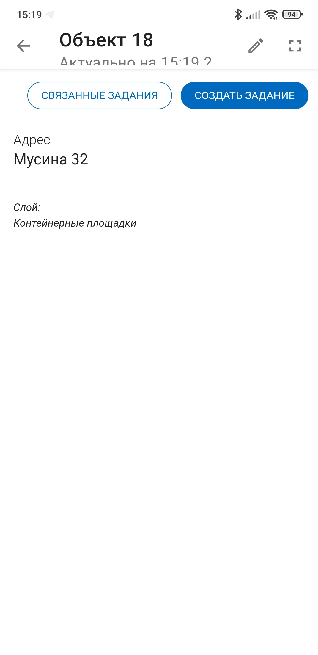 Аналогично можно создать задание для любого объекта любого доступного слоя в разделе «Карта».