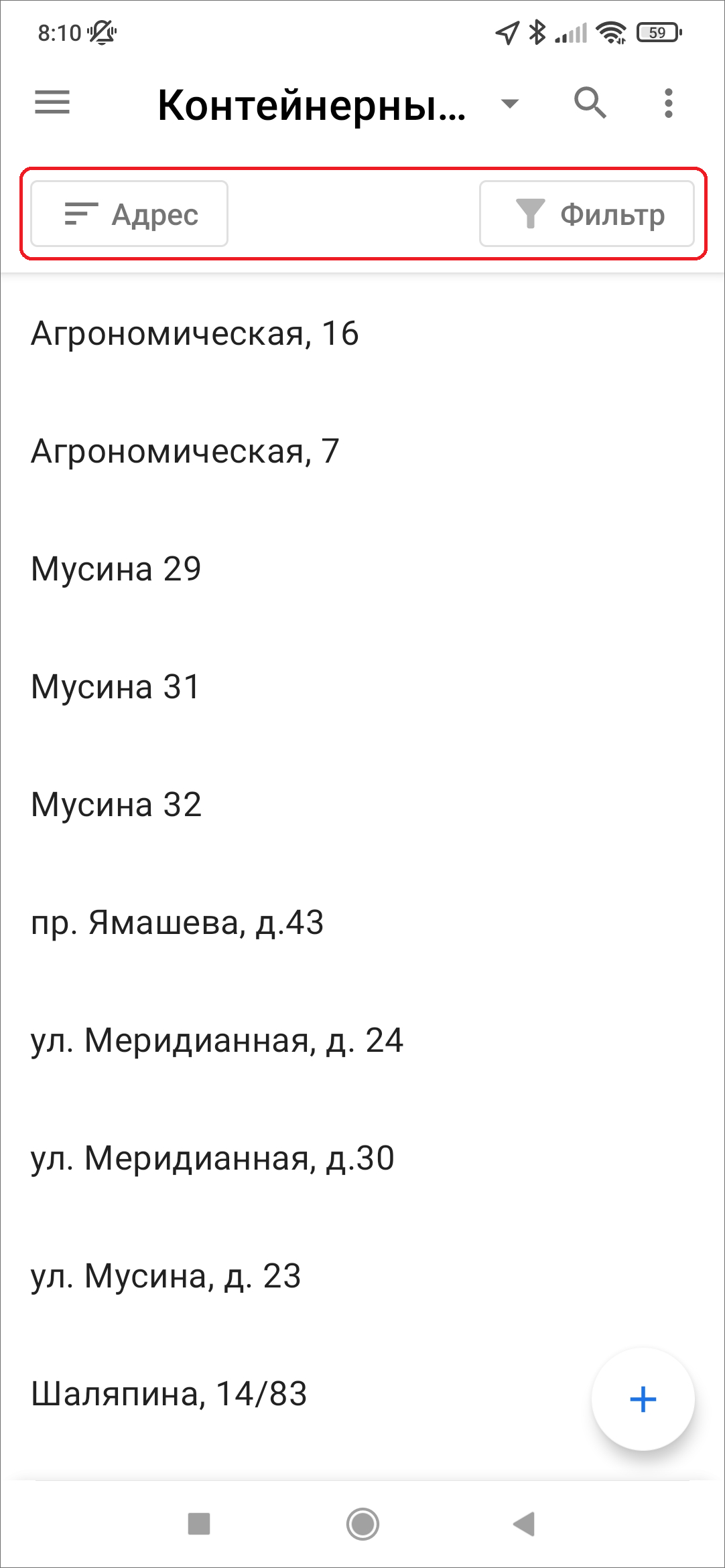 Рис. 2.83 Сортировка и фильтр объектов обслуживания