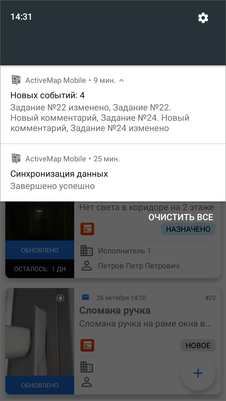Клик на PUSH-уведомление позволит перейти к обновленному заданию (если в уведомлении содержится информация об одном задании) или к списку заданий (если в уведомлении содержится информация об обновлении нескольких заданий).