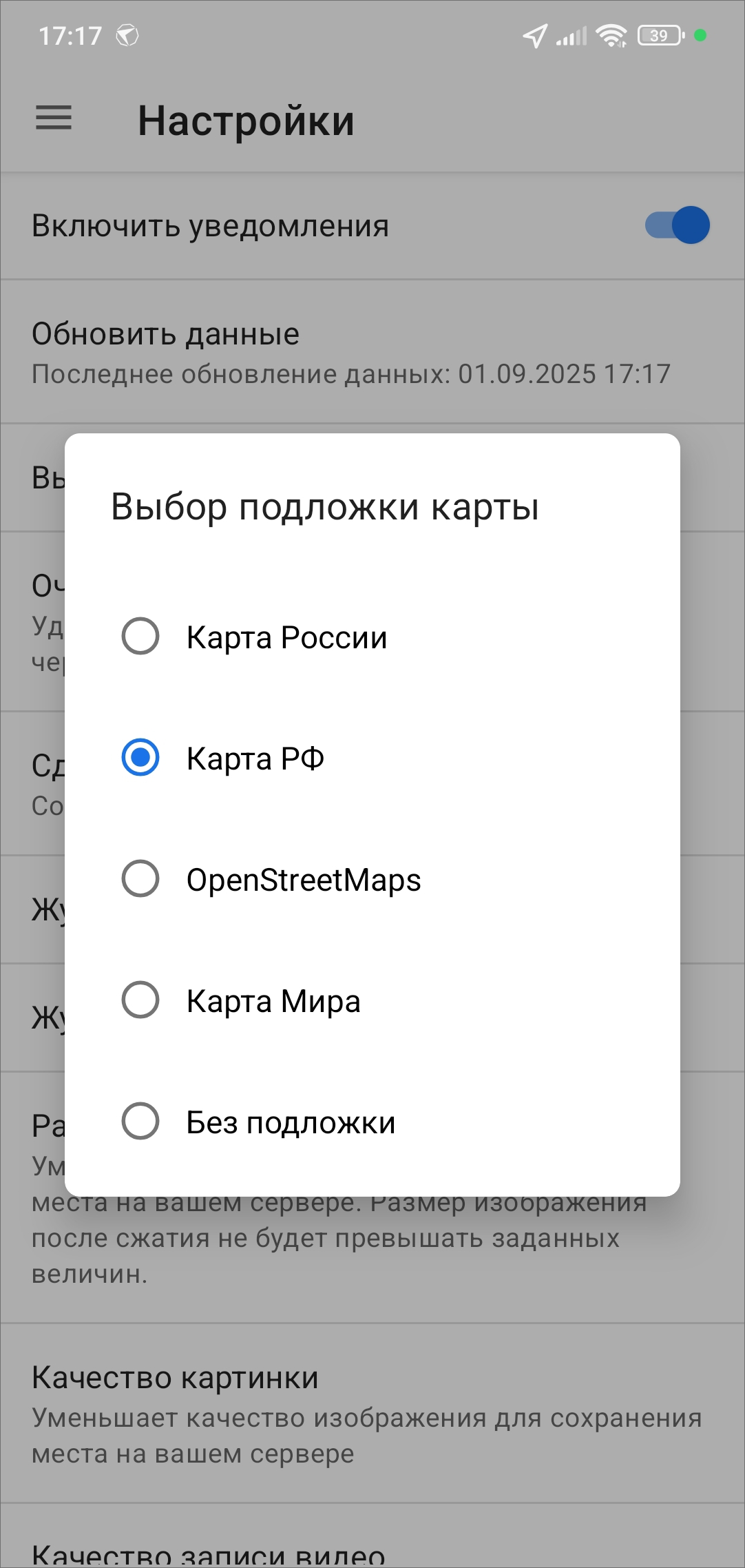 Рис. 4.3 Выбор подложки карты