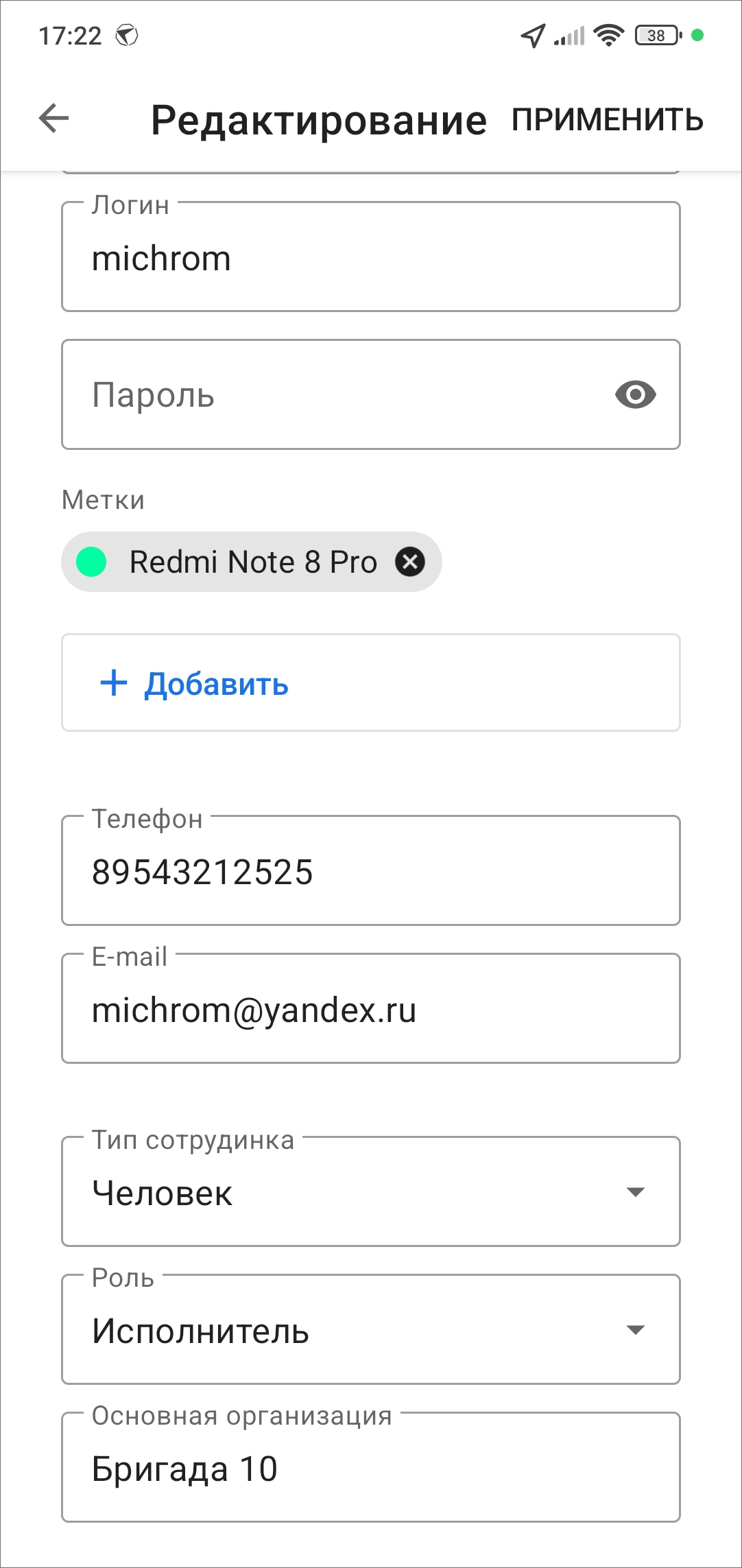 , пролистать вниз, нажать «Заблокировать» и подтвердить свое действие (Рис. 2.105). Сотрудник исчезнет из списка пользователей в приложении и не сможет авторизоваться в приложении. Разблокировать сотрудника можно только в «MapSurfer».
