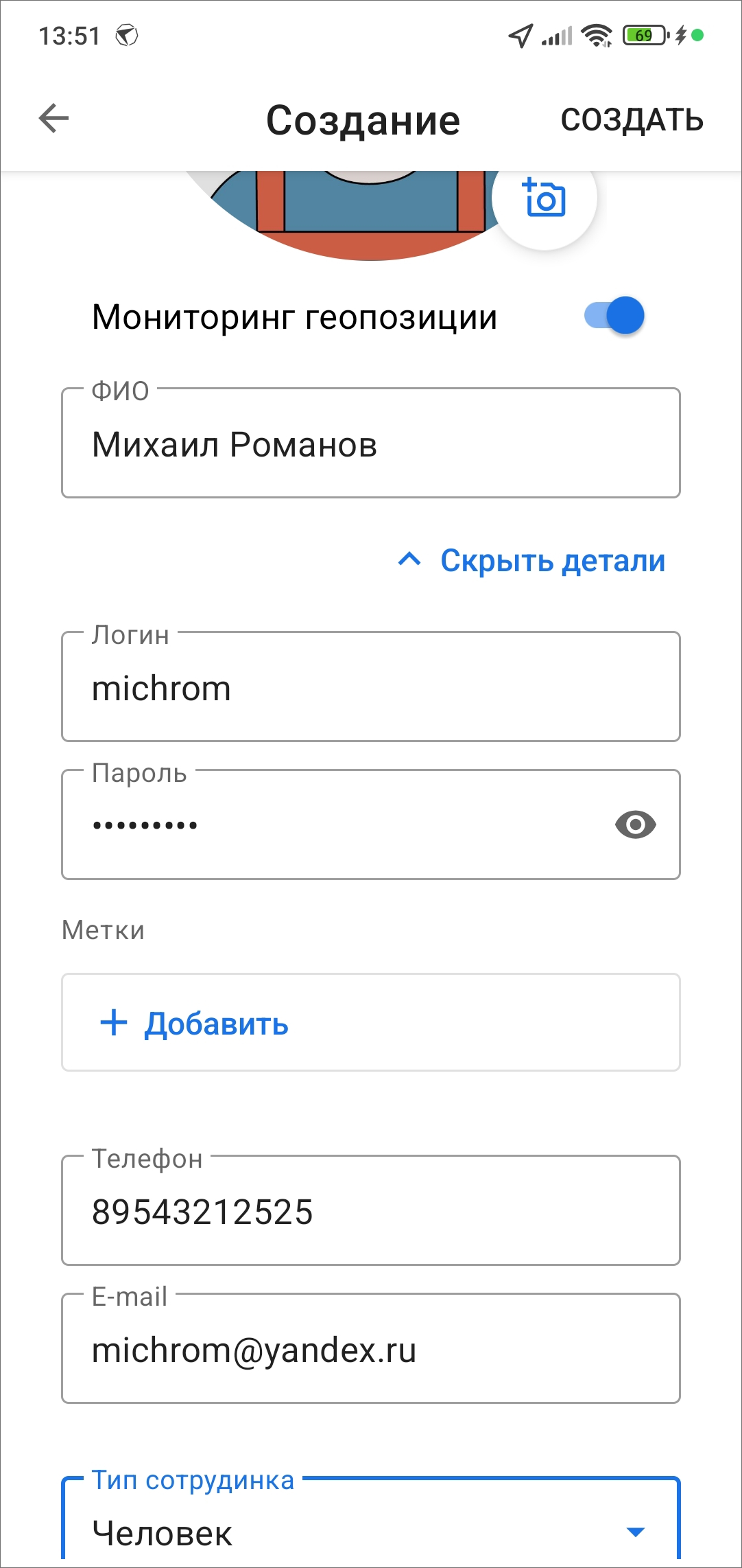 . Чтобы обновить данные по местоположению сотрудника, необходимо нажать «Обновить»