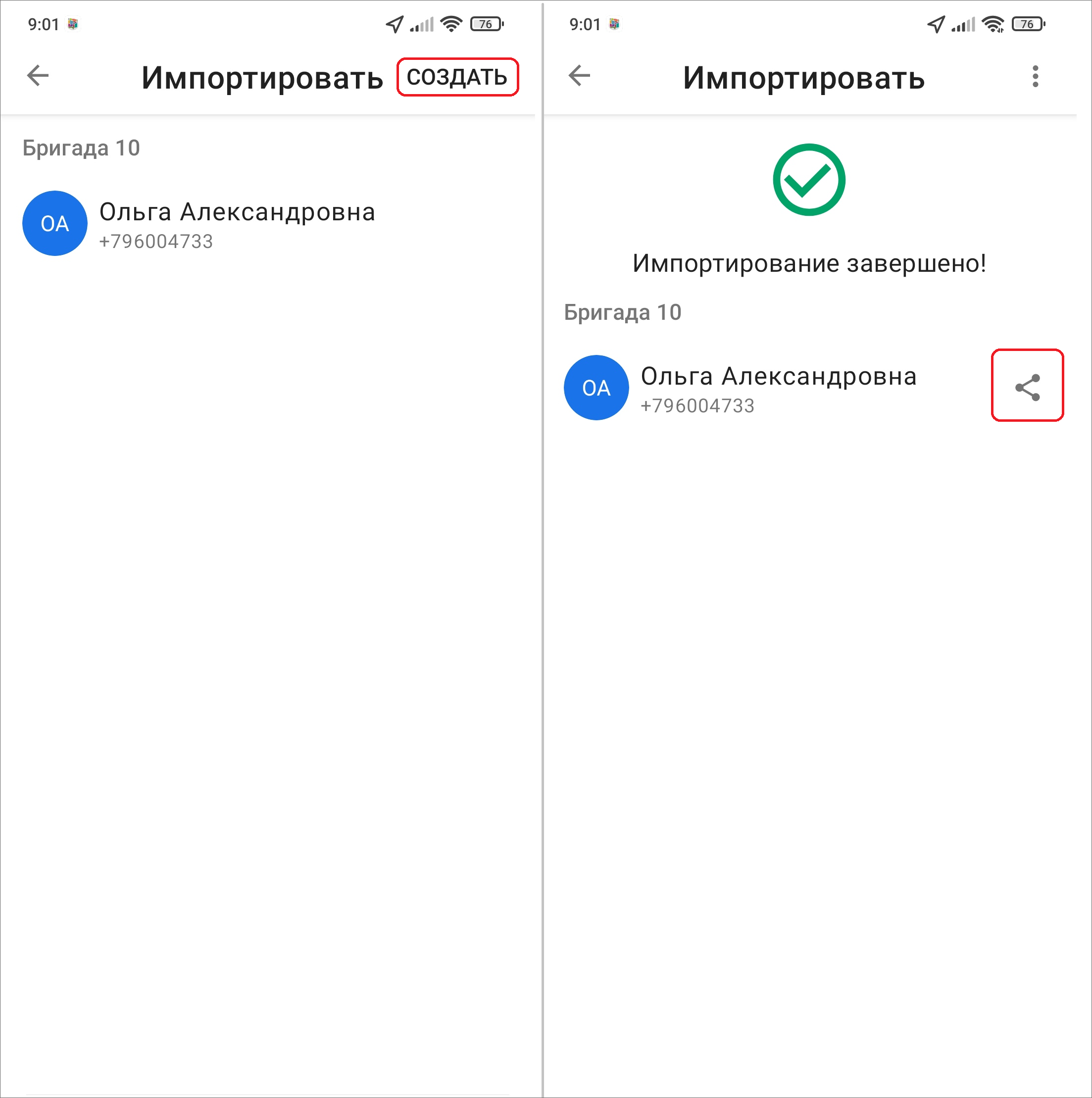 Импортировать из контактов,