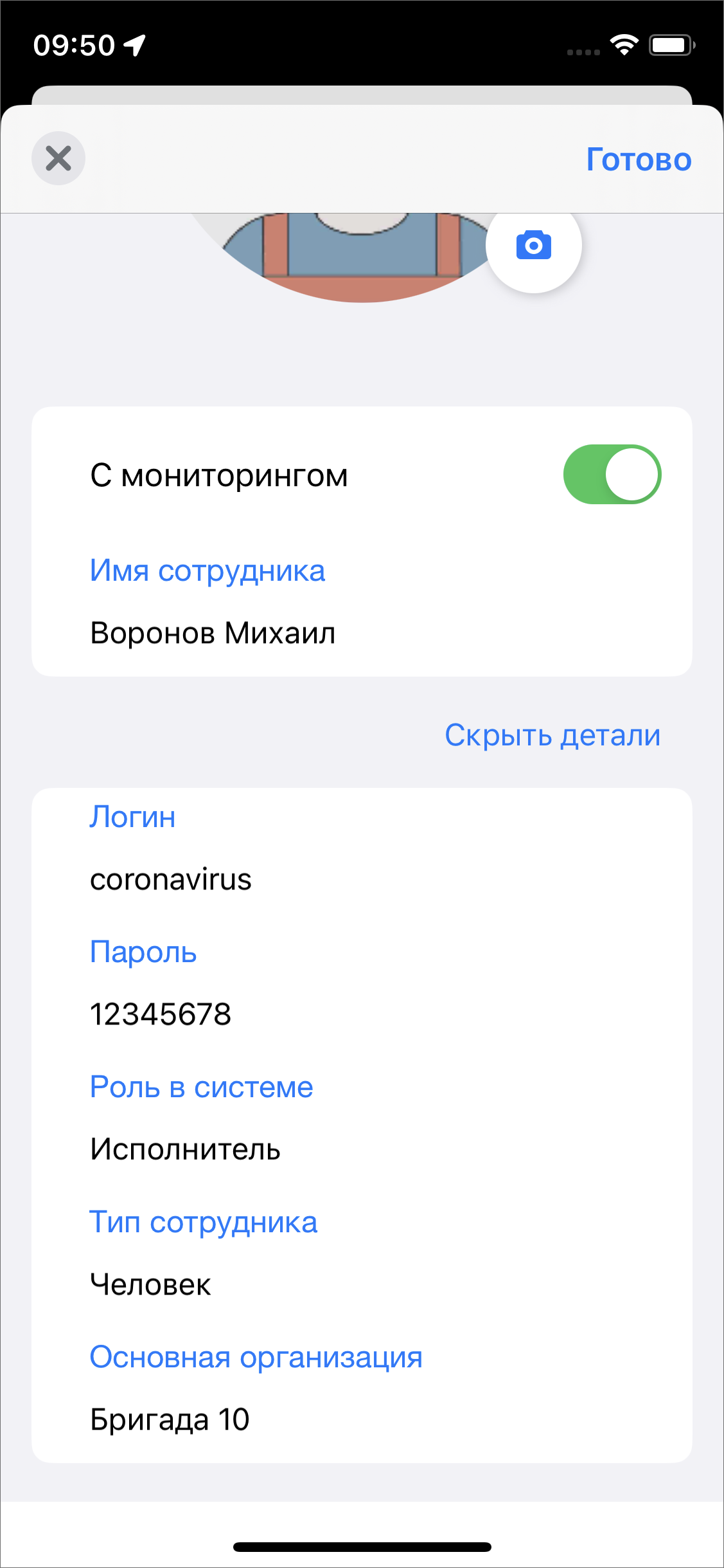 Нажатие на любую запись в списке открывает карточку сотрудника с информацией о нем и его местоположении на карте (Рис. 2.96). В окне информации по сотруднику отображаются: