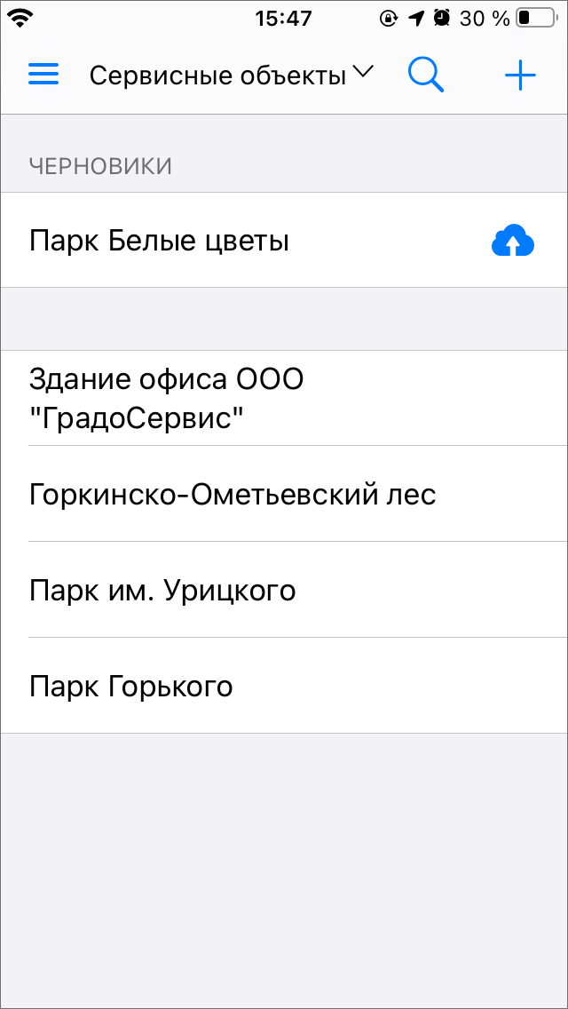 При загрузке объектов обслуживания и наличии подключения к сети Интернет поиск объектов будет осуществляться только по данным во внутреннем хранилище до тех пор, пока пользователь не обновит загруженные данные.