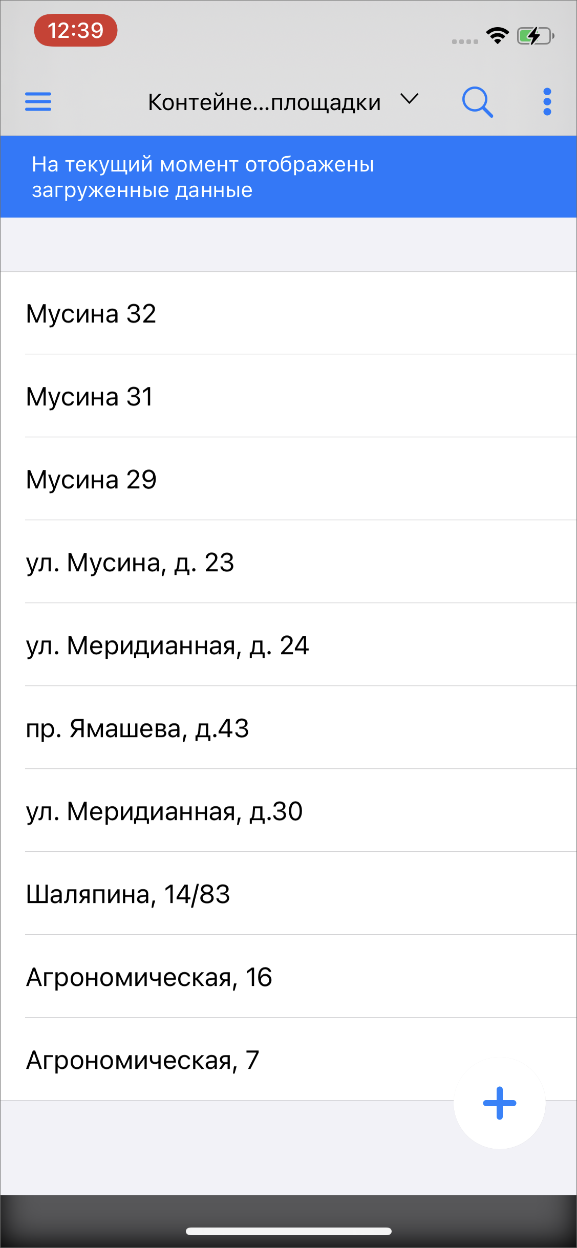 Если загружены объекты обслуживания, то даже при наличии сети Интернет пользователь продолжает работу с данными, сохраненными в кэш телефона на момент загрузки. Для работы с актуальными данными необходимо обновить данные свайпом или выбрать «Обновить данные» в меню окна списка слоев объектов обслуживания. Если исчезло сообщение «На текущий момент отображены загруженные данные», значит, данные отображаются в онлайн режиме.