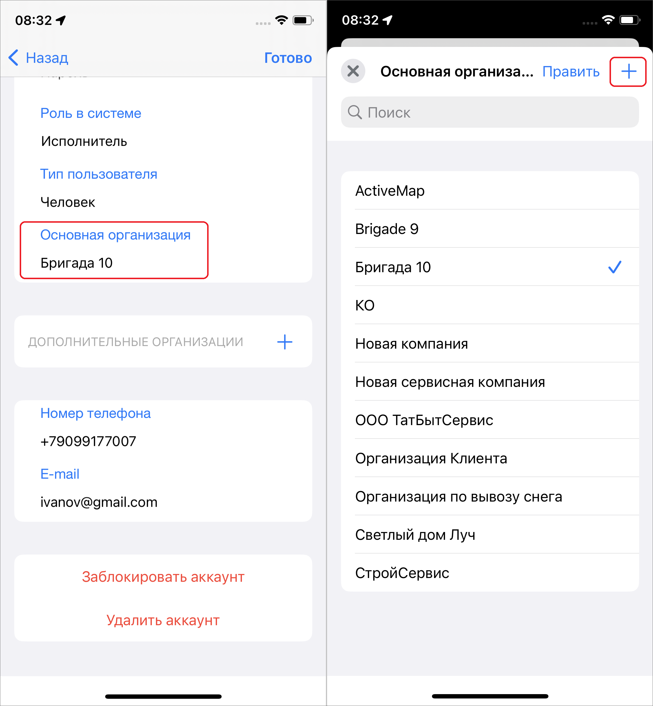 Последняя выбранная организация автоматически подставится в основную организацию. Чтобы изменения не сохранились, нужно выйти из профиля пользователя без сохранения изменений.