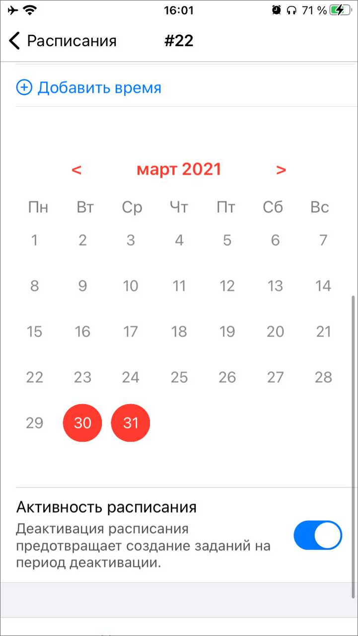 В окне редактирования как нового, так и существующего расписания можно: