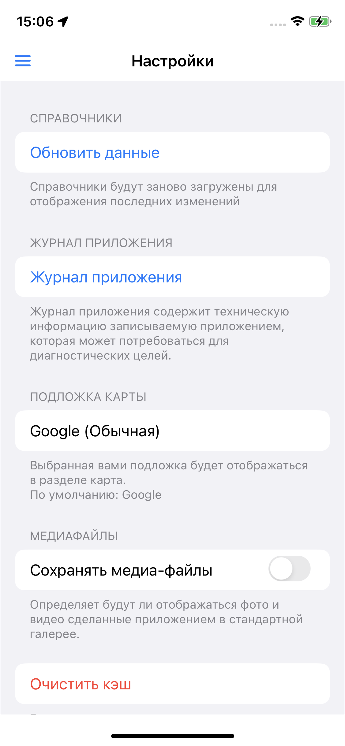 Максимальная ошибка местоположения - позволяет указать допустимую погрешность (в метрах) определения геолокации устройства при использовании встроенной камеры. По умолчанию 50 м. Если полученное местоположение имеет большую погрешность, чем выставленное значение и настройка «Запрещать фотографирование» подключена, то приложение не позволит сделать снимок до тех пор, пока не получит точку, удовлетворяющую требованиям.