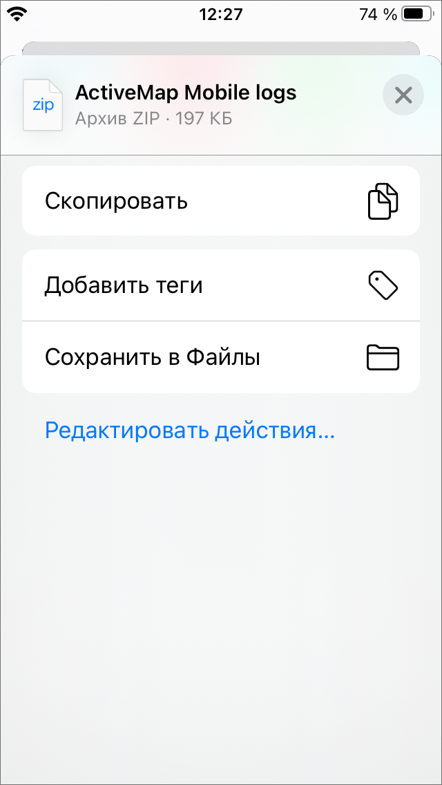 Пункт «Журнал приложения» позволяет экспортировать лог-файлы приложения, содержащие техническую информацию, записываемую устройством (она может потребоваться для диагностических целей). Для того чтобы отправить лог-файл, нужно нажать «Экспортировать журнал приложения». Откроется окно, в котором можно выбрать удобный способ послать файл либо сохранить его на устройстве.