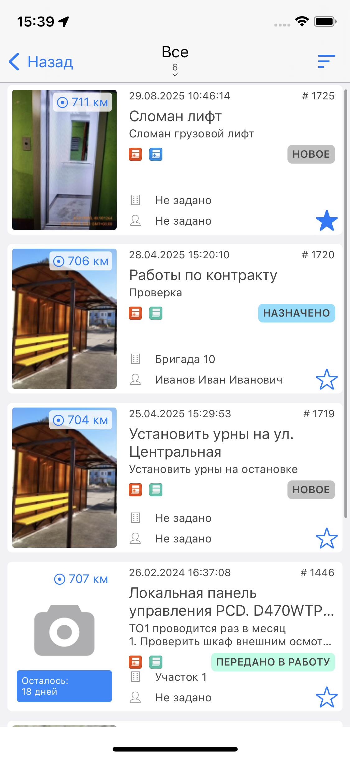 Избранные задания для каждого пользователя свои. Чтобы сделать задание избранным, нужно отметить его звездочкой в карточке задания. Чтобы удалить из избранного — снять звездочку с задания. Избранные задания будут отображены и синхронизированы для пользователя в «ActiveMap Messages» и «ActiveMap Mobile» (Рис. 2.25).