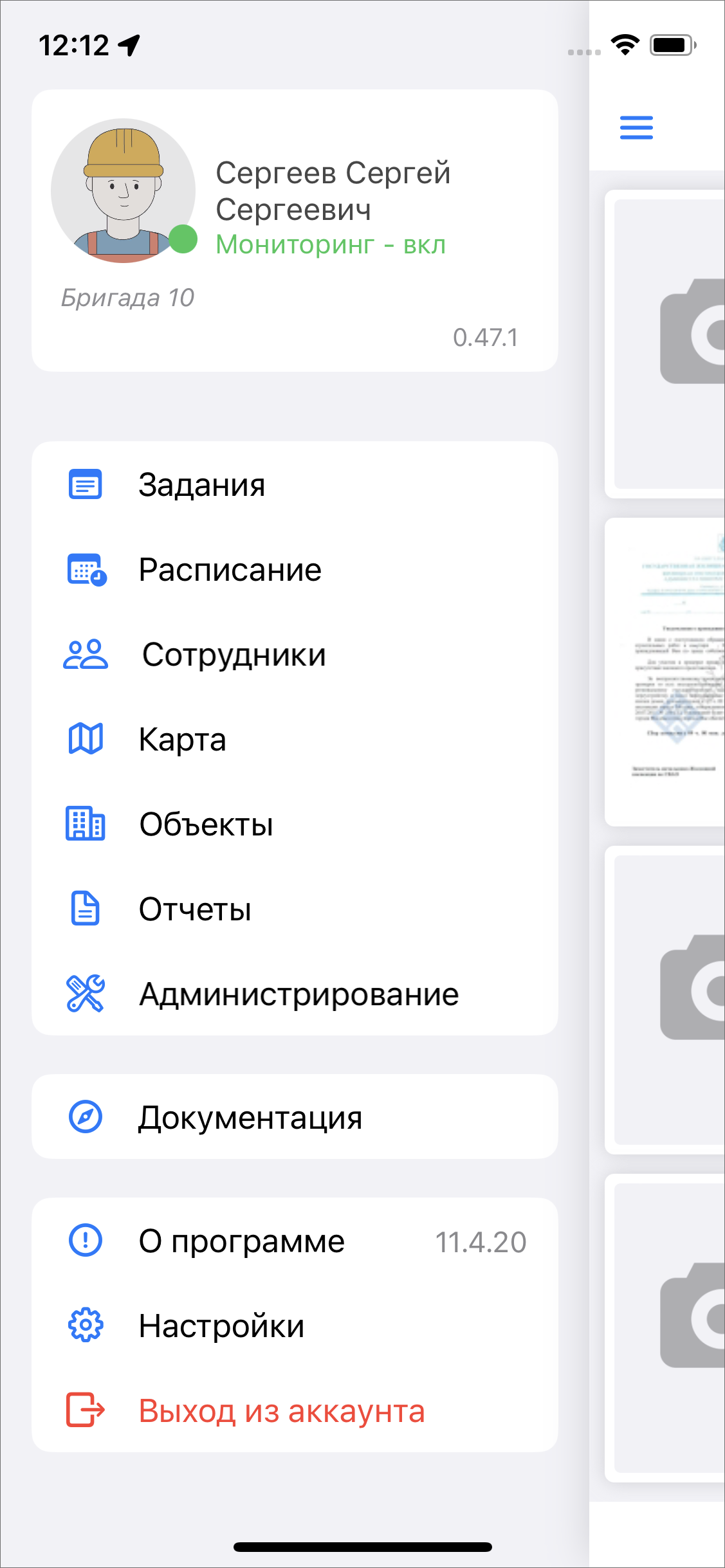 В «ActiveMap Mobile» реализована возможность работы с отчетами. Чтобы отчет стал доступен, пользователю нужно выдать права в веб-компоненте «MapSurfer». Для формирования отчетов выберите раздел «Отчеты» бокового меню навигации «ActiveMap Mobile» (Рис. 2.121).