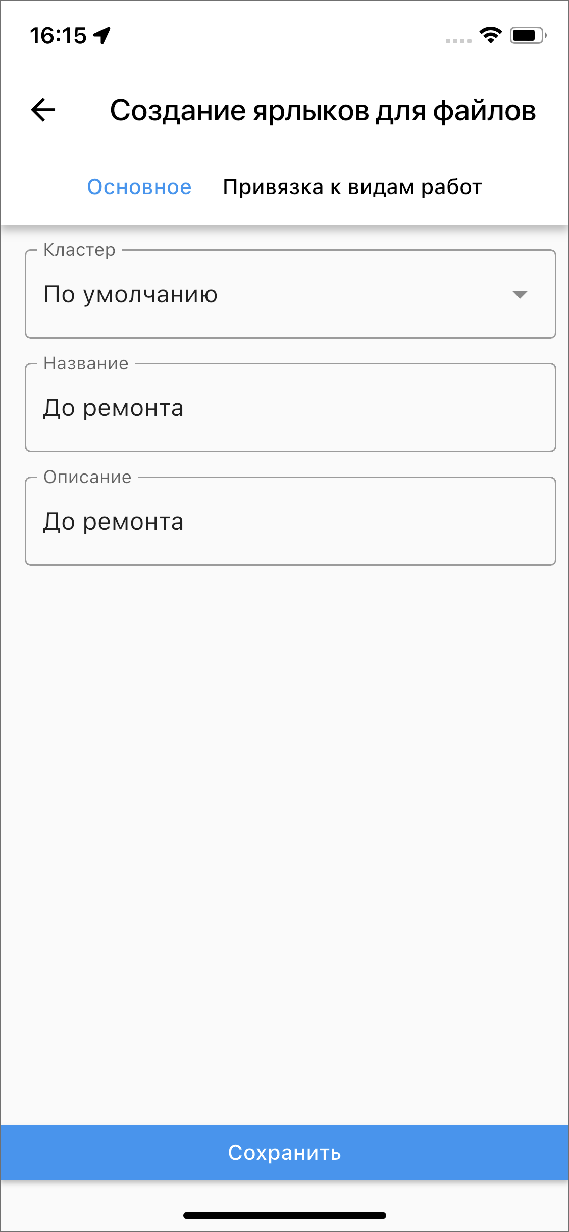 . Заполнить все нужные поля во вкладках «Основное» или «Привязка к видам работ» и нажать «Сохранить» (Рис. 2.119).