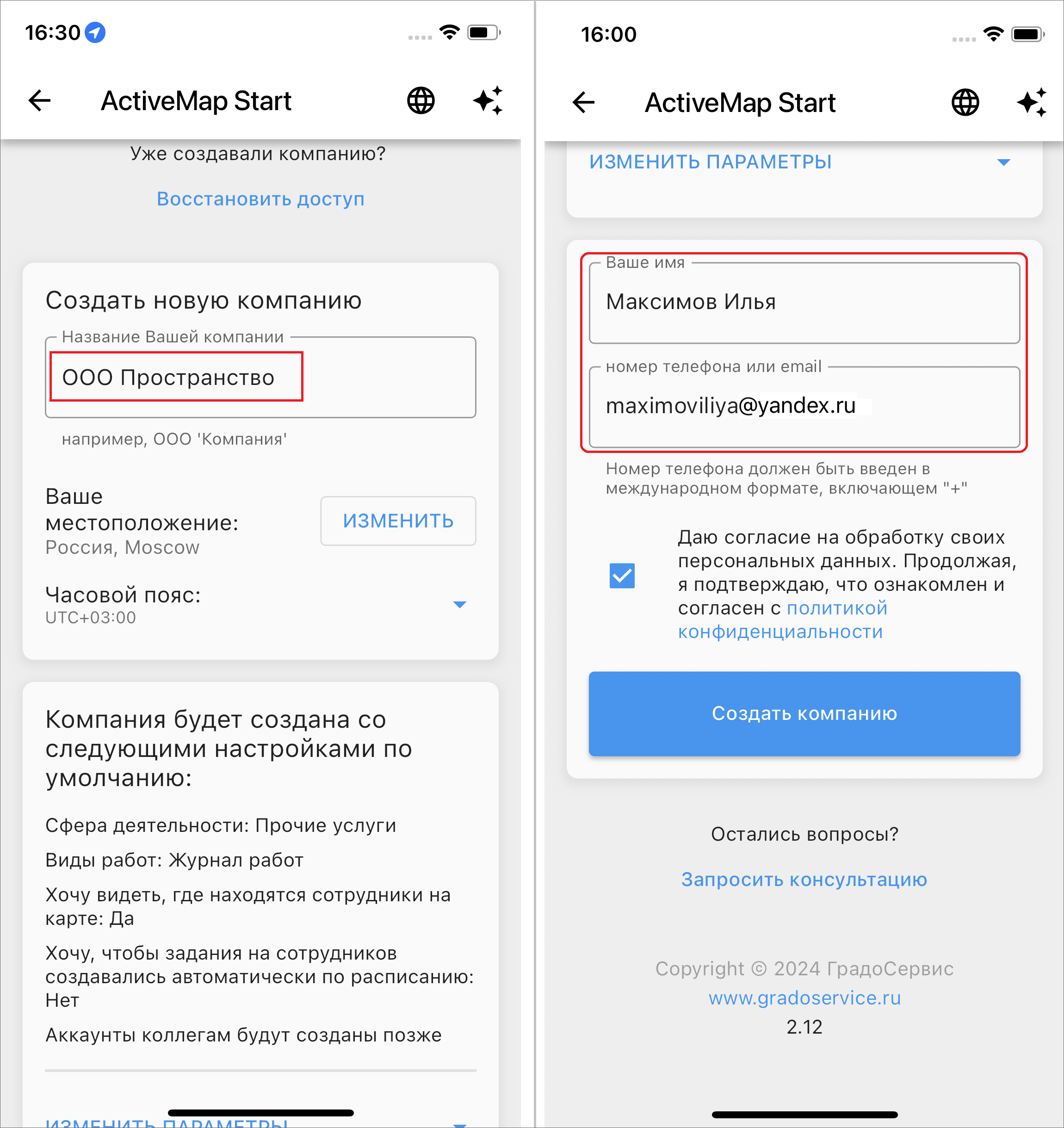 2.1.2. Регистрация компании и сотрудников в приложении