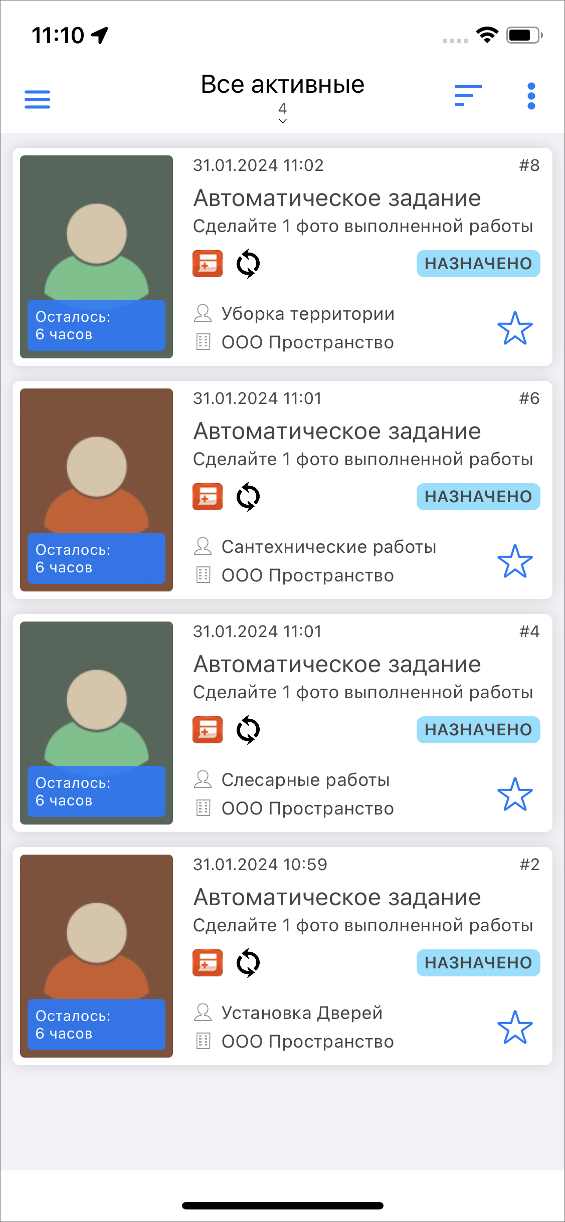 Хочу, чтобы задания на сотрудников создавались автоматически по расписанию: Нет.