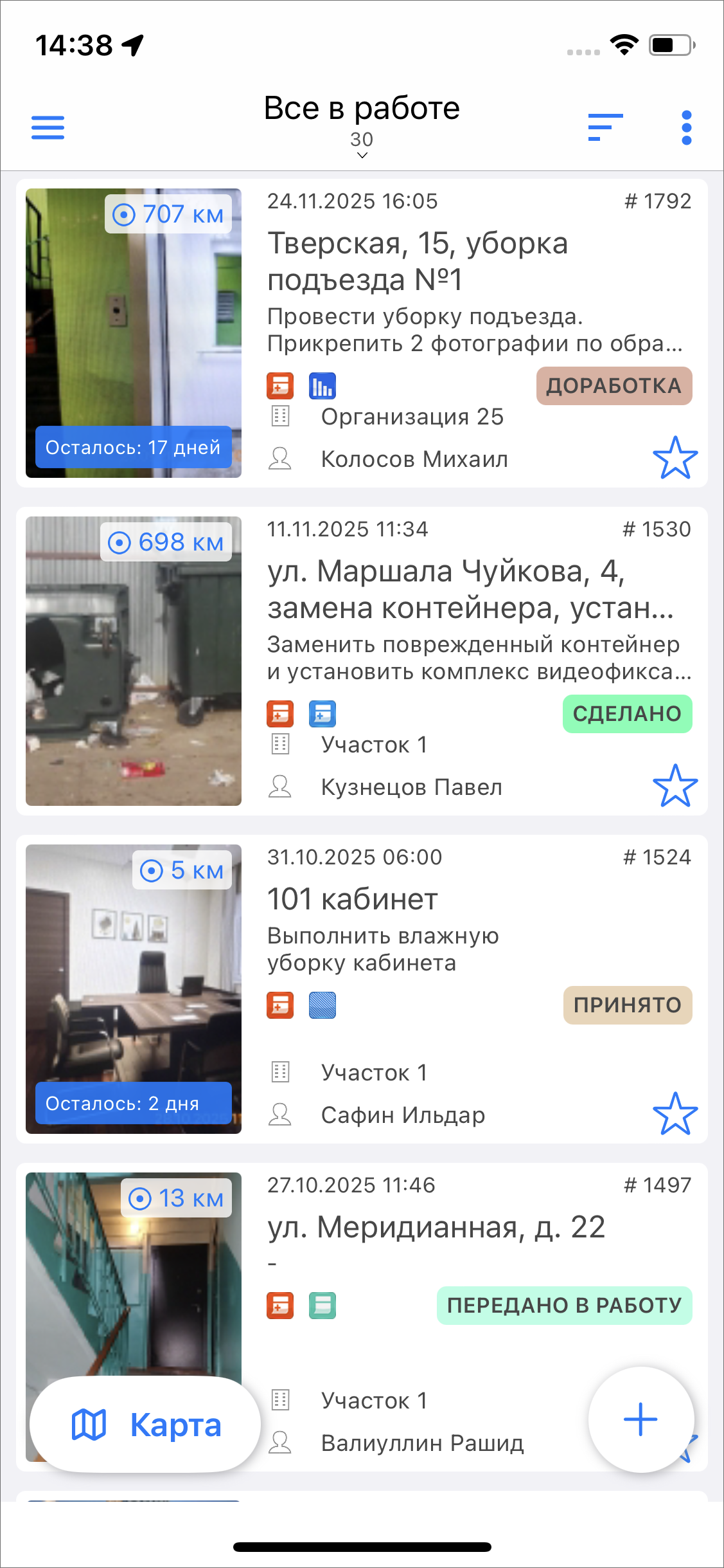 «Инспектор системы» отвечает за управление заданиями всех кластеров, включая их создание и редактирование (за исключением изменения заголовка, организации, вида работ, приоритета, описания, срока выполнения и местоположения).