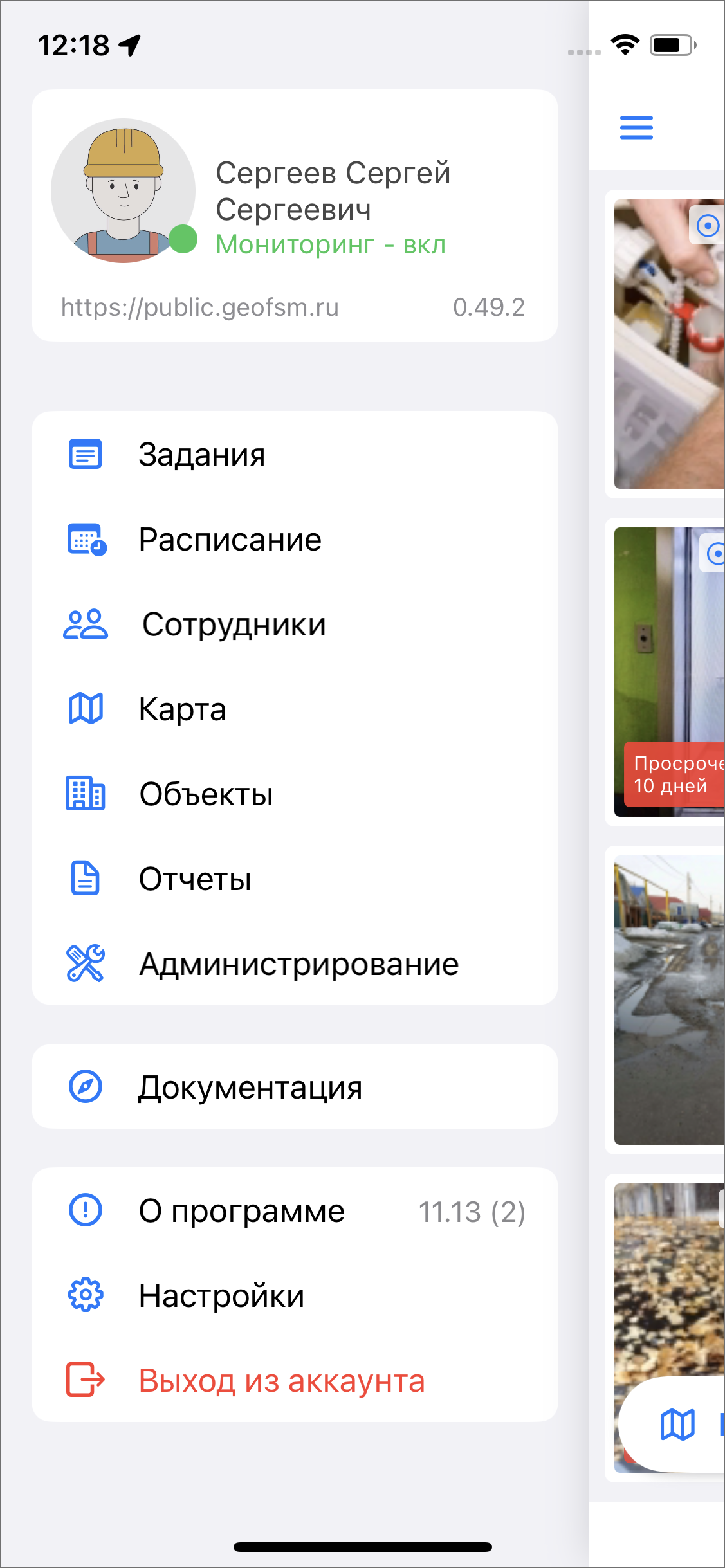 Для завершения настройки системы нужно нажать «Завершить». Откроется приложение «ActiveMap Mobile» с уже созданными заданиями на всех созданных пользователей (Рис. 2.10).