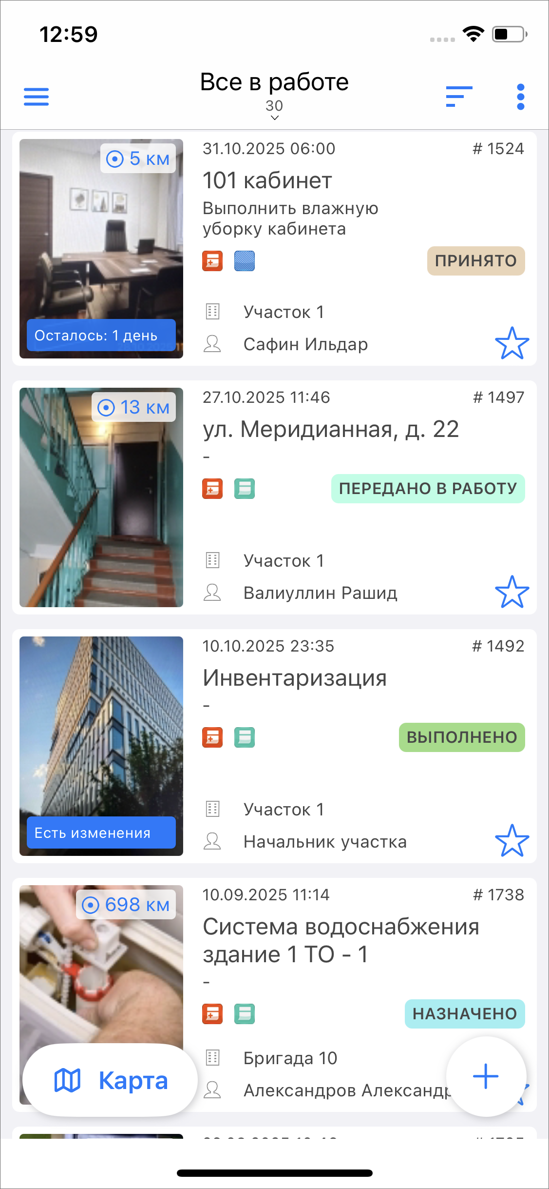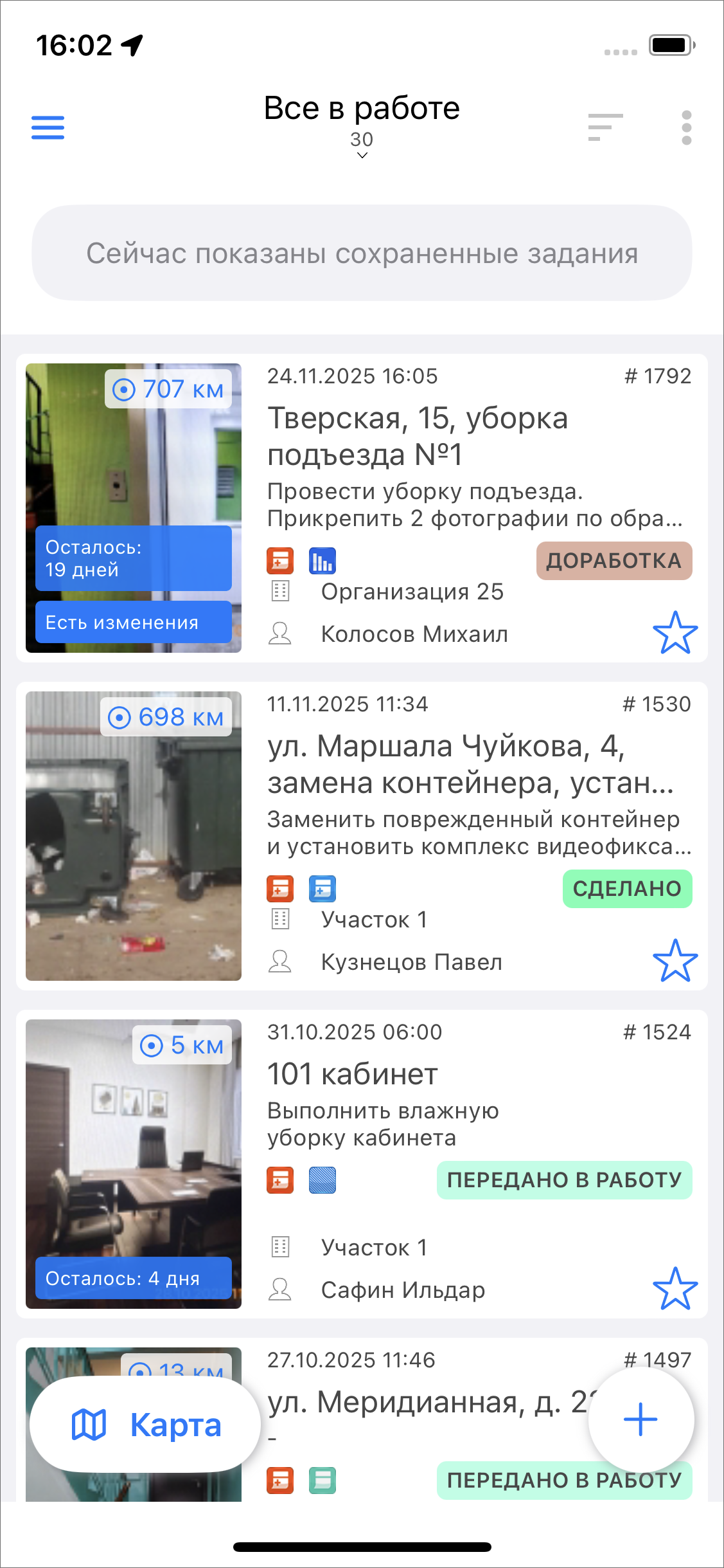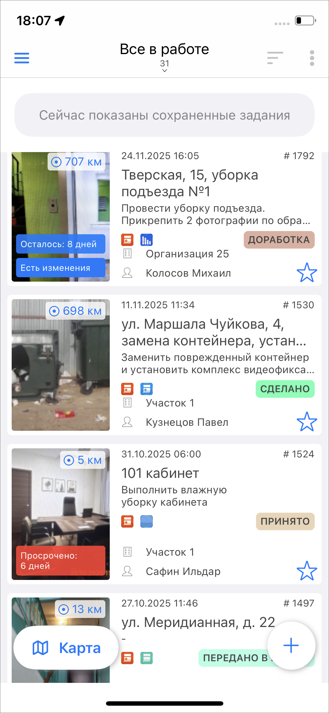 «Назначено» – задания, которые уже обработал диспетчер и назначил их исполнителя;