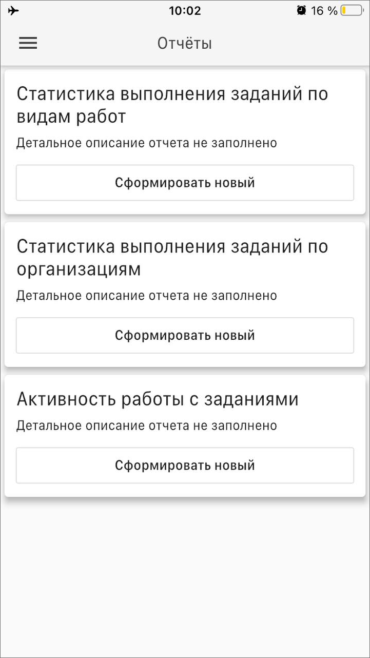 В «ActiveMap Mobile» реализована возможность работы с отчетами. Чтобы отчет стал доступен, пользователю нужно выдать права в веб-компоненте «MapSurfer». Для формирования отчетов выберите раздел «Отчеты» бокового меню навигации «ActiveMap Mobile» (Рис. 2.124).