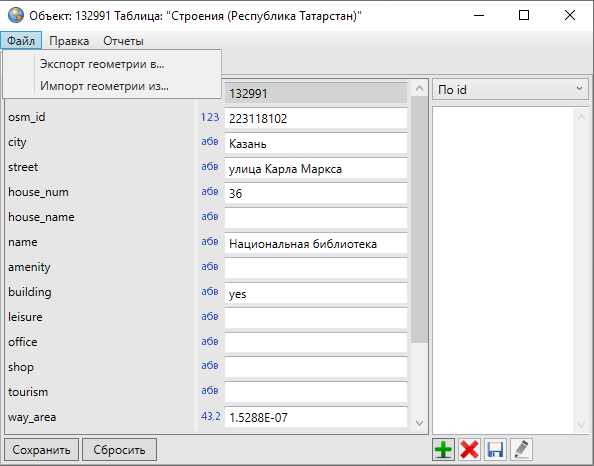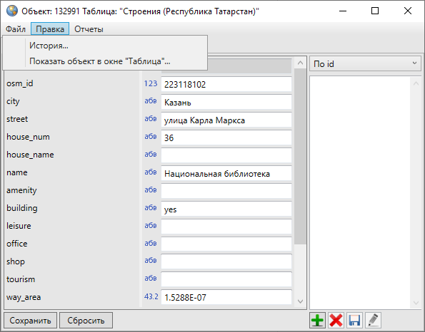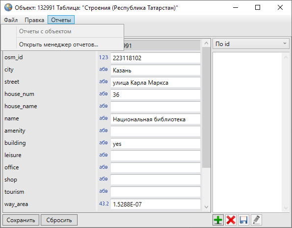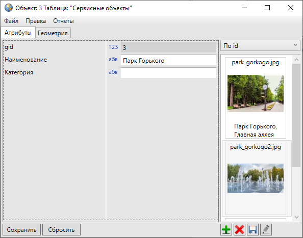 Кнопка «Сбросить» используется для отмены действий по добавлению и редактированию атрибутивной информации.