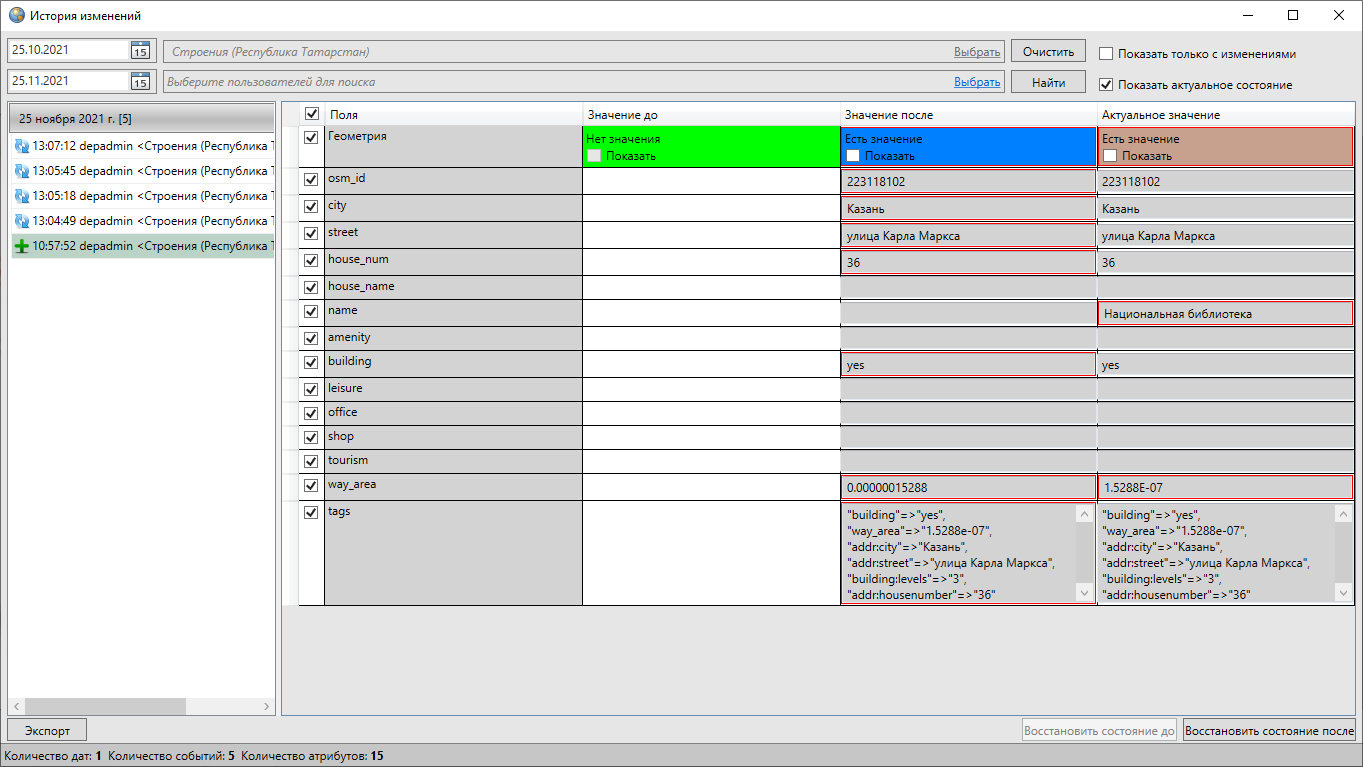 Рис. 2.166 Просмотр истории изменений объектов