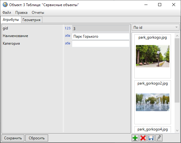 Нажатие на кнопку «Сохранить» сохраняет внесенную (отредактированную) атрибутивную информацию по объекту и прикрепленные файлы.