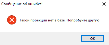 Рис. 2.116 Информационное сообщение Программы об отсутствии проекции с введенным кодом в базе