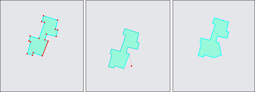 В процессе добавления линейного или полигонального объекта можно включить режим удаления вершин и удалить ошибочно добавленные вершины объекта. Для включения режима удаления вершин после обозначения n-ной вершины однократным нажатием левой кнопки мыши следует нажать клавишу «Backspace» на клавиатуре. При повторном нажатии клавиши «Backspace» будет удалена вершина n-1, а вершина n соединена с вершиной n-2, затем при повторном нажатии клавиши «Backspace» будет удалена вершина n-2, а вершина n соединена с вершиной n-3 и т.д. Таким образом, n-кратное нажатие клавиши «Backspace» удалит n вершин объекта.