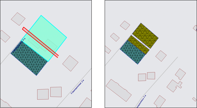 На карте будут отображены объекты, которые получились в результате разрезания исходного объекта линией (Рис. 2.142).