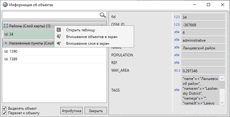 Рис. 2.91 Открытие окна атрибутивных данных по выбранному объекту