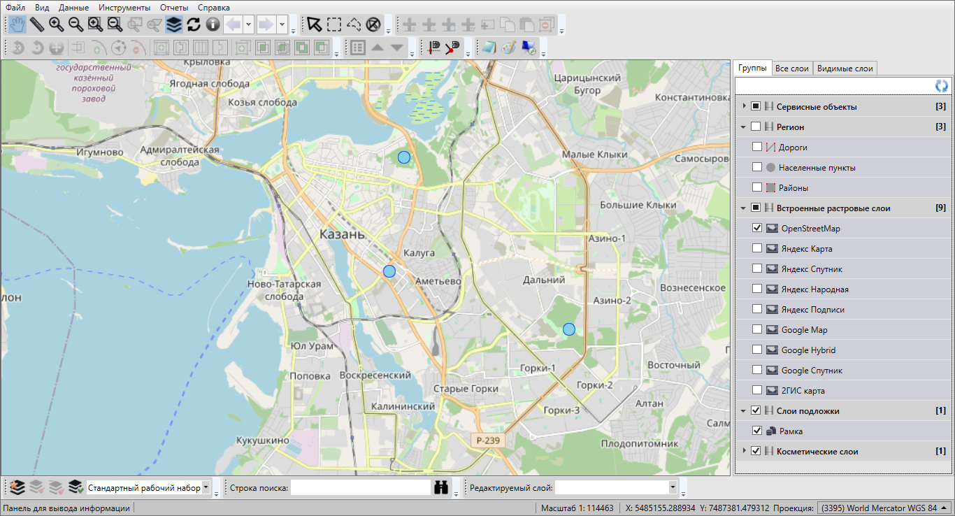 объектов данного слоя на карте с помощью кнопок «Выбор объектов»