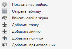 «Показать настройки…» — переход к окну редактирования свойств слоя подложки (более подробно редактирование свойств базовых слоев описано в разделе Работа с базовыми слоями).
