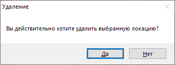 Для удаления имеющейся локации достаточно выделить ее наименование в списке однократным нажатием левой кнопки мыши, нажать кнопку «Удалить…» и подтвердить намерение удалить локацию в окне «Удаление» (Рис. 2.87).